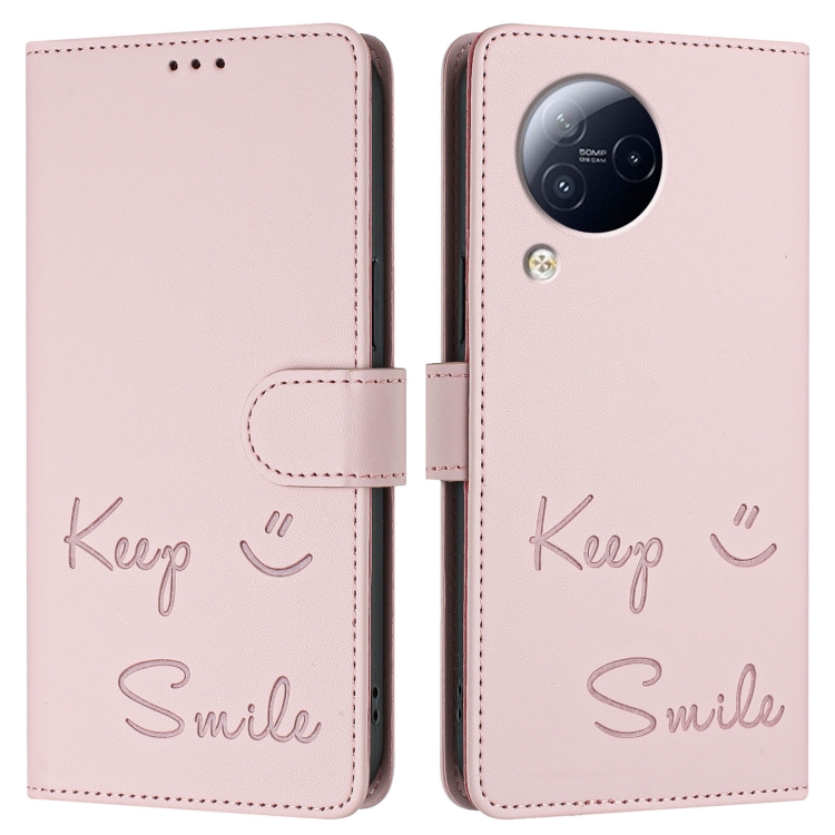 Funda de Cuero Rfid con Relieve Sonriente para Xiaomi Civi 3 (Rosa)