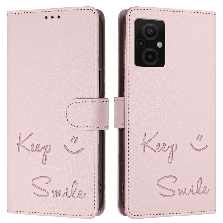 Funda de Cuero Rfid con Relieve Sonriente para Xiaomi Poco M4 5G/Poco M5 4G (Rosa)