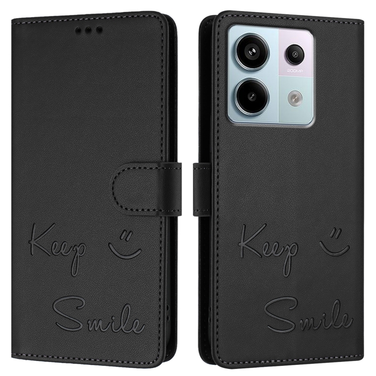 Funda de Cuero Rfid con Relieve Sonriente para Xiaomi Poco X6 (Negra)