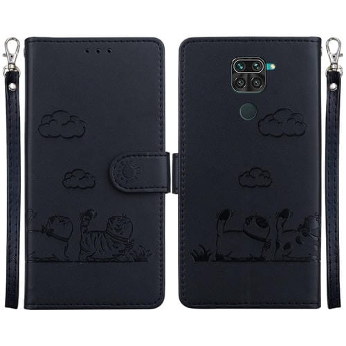 Funda de Cuero Rfid con Diseño de Gatos para Redmi Note 9/10X 4G (Negra)
