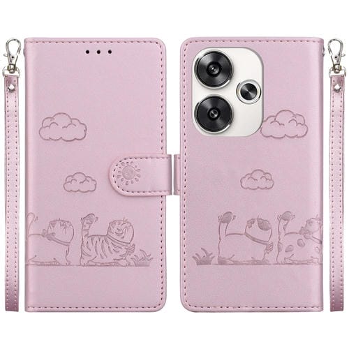 Funda de Cuero Rfid con Diseño de Gatos para Xiaomi Poco F6 (Oro Rosa)
