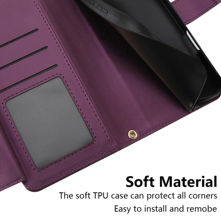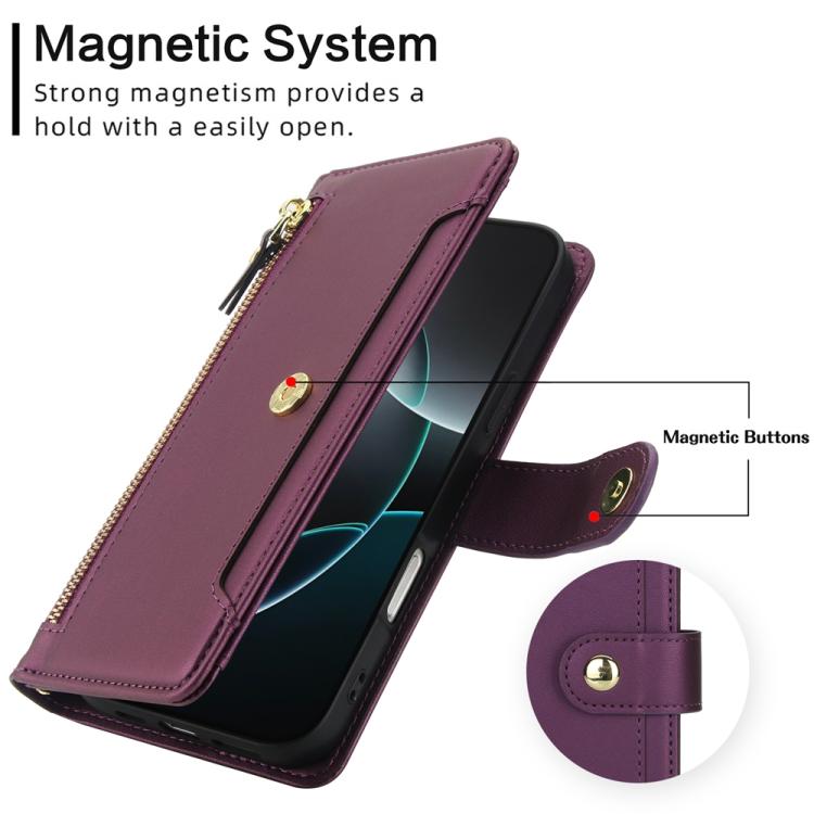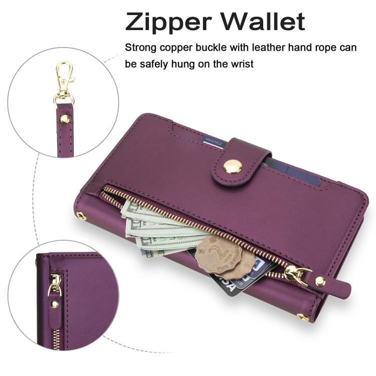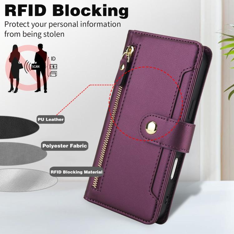 Funda de cuero tipo billetera con cremallera y siete ranuras para tarjetas para iPhone 17 Pro (morado oscuro)