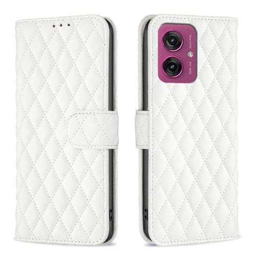 Funda de Cuero Tipo Billetera para Motorola Moto G55 con Tapa y Diseño de Celosía (Blanca)
