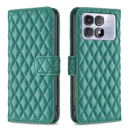Funda de Cuero Tipo Billetera con Tapa y Diseño de Celosía En Forma de Diamante para Redmi K70 Ultra (Verde)