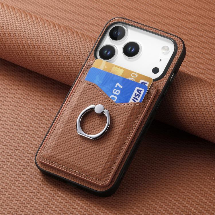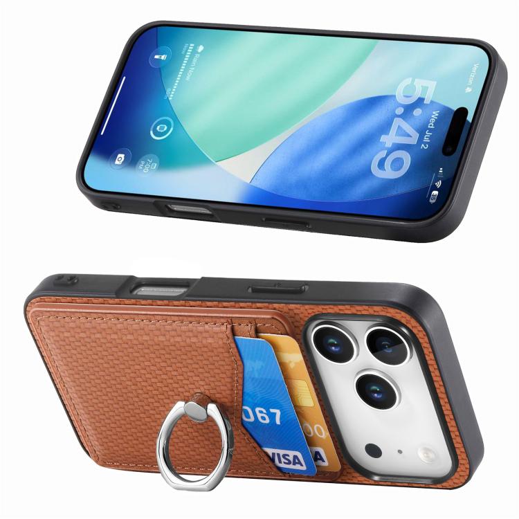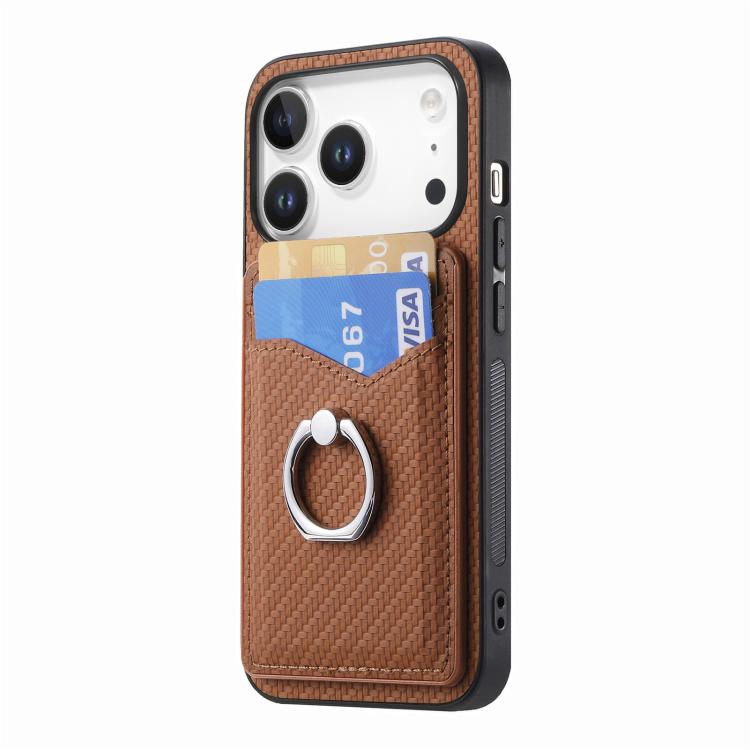 Funda de fibra de carbono con anillo para tarjeta tipo billetera para iPhone 17 Pro (marrón)