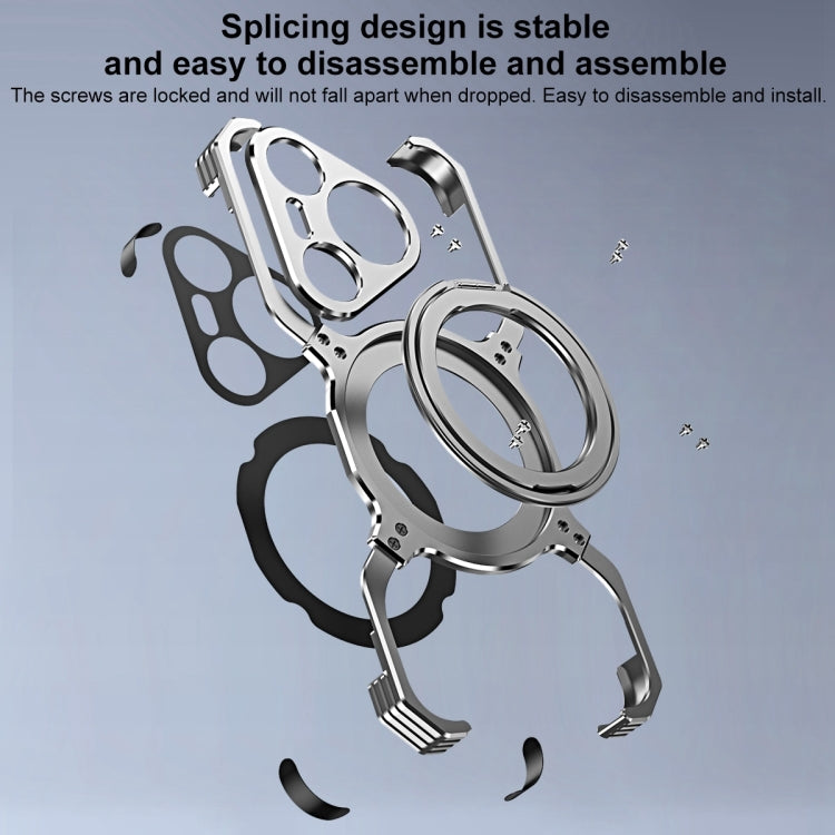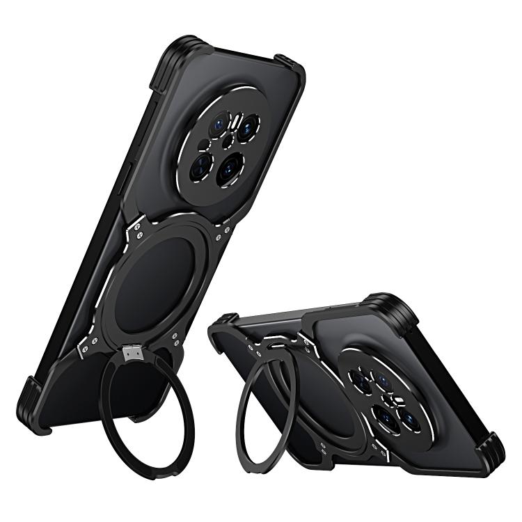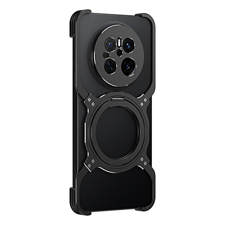 Funda de Metal con Soporte Magsafe y Brazo Mecánico para Huawei Mate 70 (Negro y Plateado)