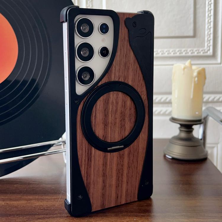 Funda de metal sin marco para Samsung Galaxy S24 Ultra 5G, color nogal, con rotación de 360 grados y soporte MagSafe (negro)