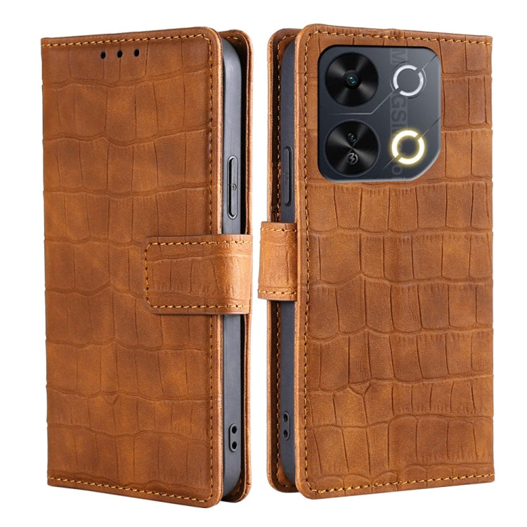 Funda de Piel con Cierre Magnético para Teléfono Itel P65 (Marrón) Tacto Cocodrilo