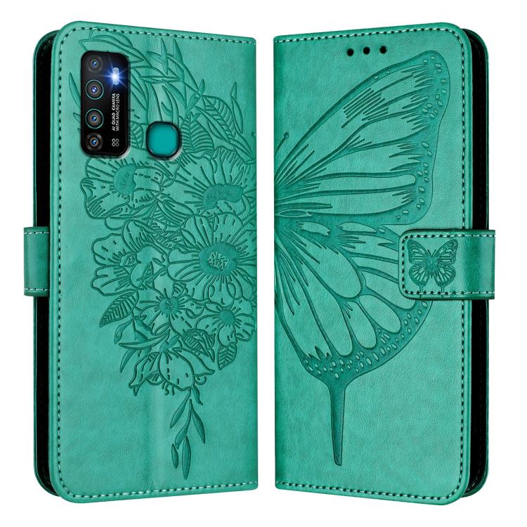 Funda de Piel para Tecno Camon 15 con Diseño de Mariposa en Relieve (Verde)