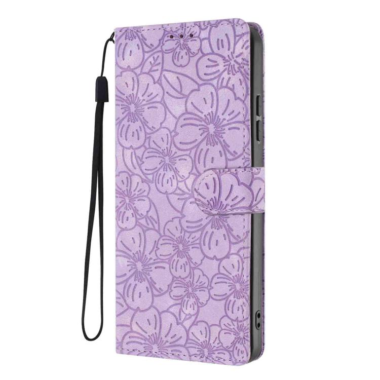 Funda de piel con relieve de cerezo para iPhone 17 (morada)