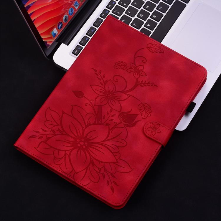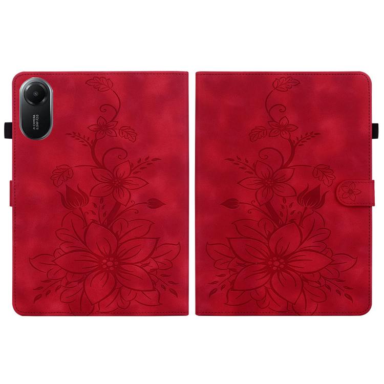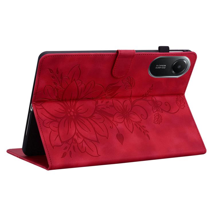 Funda de piel con relieve Lily para Redmi Pad 2 / Redmi Pad SE 11 2025 (roja)