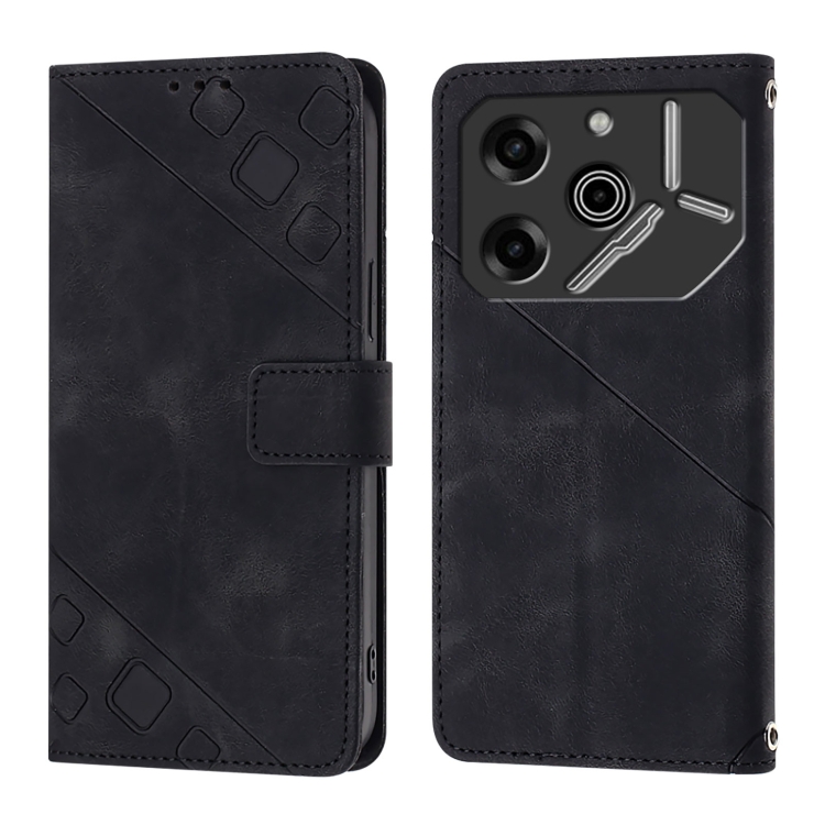 Funda de Piel con Relieve para Teléfono Tecno Pova 6 5G (Negra)