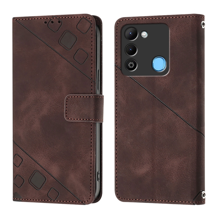 Funda de Piel con Relieve para Teléfono Tecno Spark 9 (Marrón)