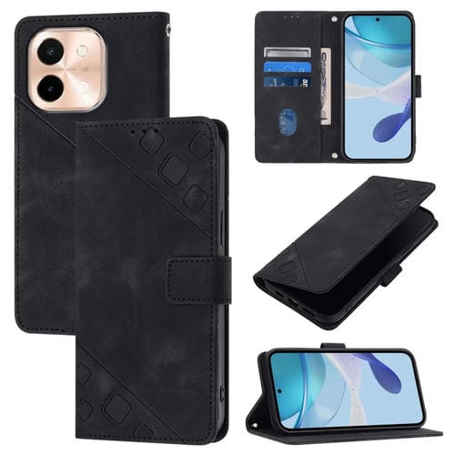 Funda de Piel con Relieve para Teléfono Vivo Y28 4G (Negra)