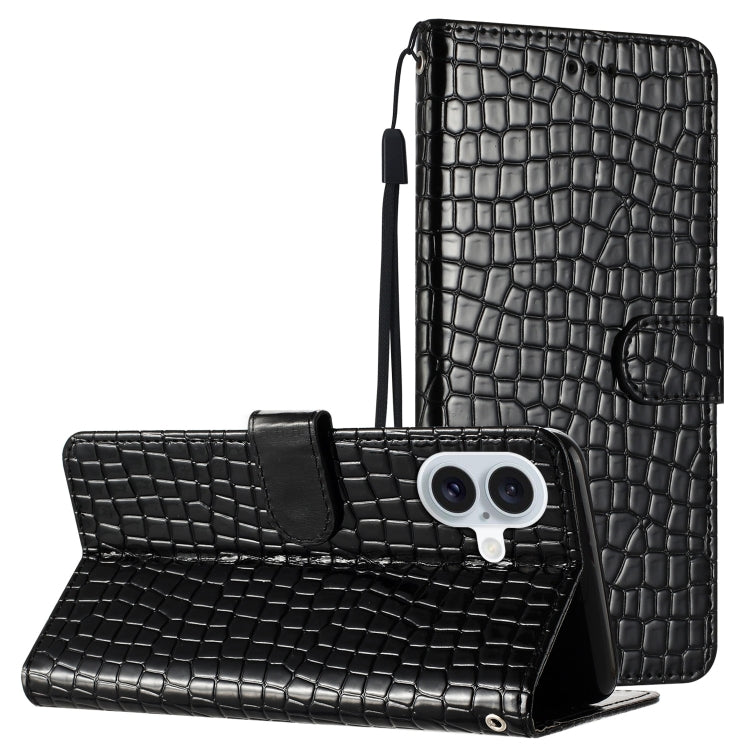 Funda de Piel con Tapa Horizontal con Textura de Cocodrilo para iPhone 16 (Negra)