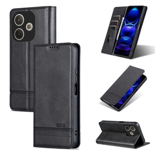 Funda de Piel con Tapa Magnética Azns con Textura de Becerro para Oppo A5 Energy / A5 Pro 5G (Negro)