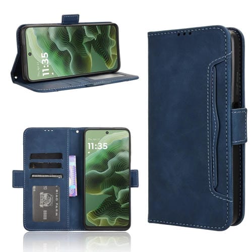 Funda de Piel con Textura de Becerro y Ranuras para Tarjetas para Motorola Moto G35 5G (Azul)