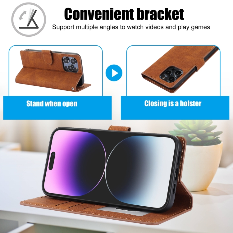 Funda para iPhone 16 Pro de Piel de Becerro con Textura de Piel de Fantasía (Marrón)