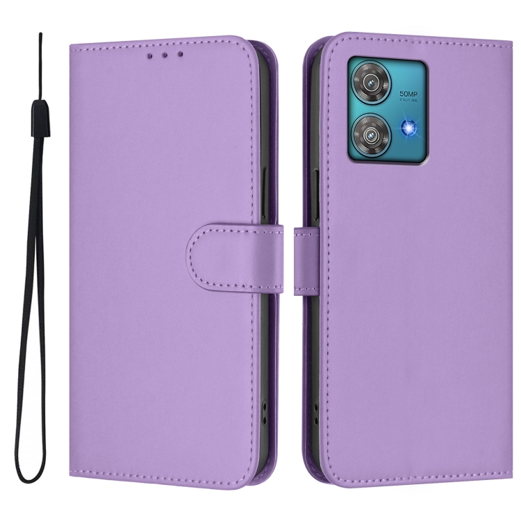 Funda de Piel Sintética con Cordón para Motorola Edge 40 Neo 5G (Morado Lavanda)