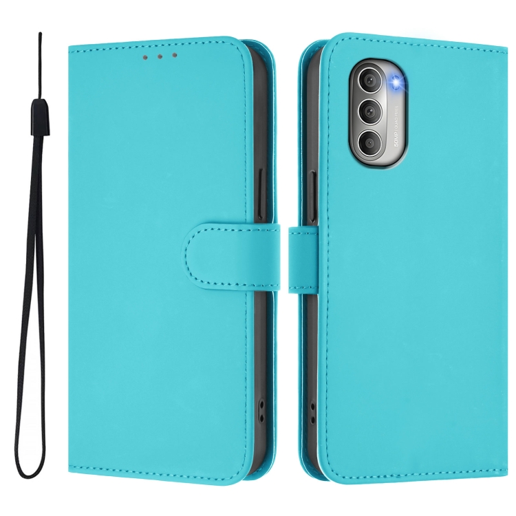 Funda de Piel Sintética con Cordón para Motorola Moto G51 5G (Azul Lago)