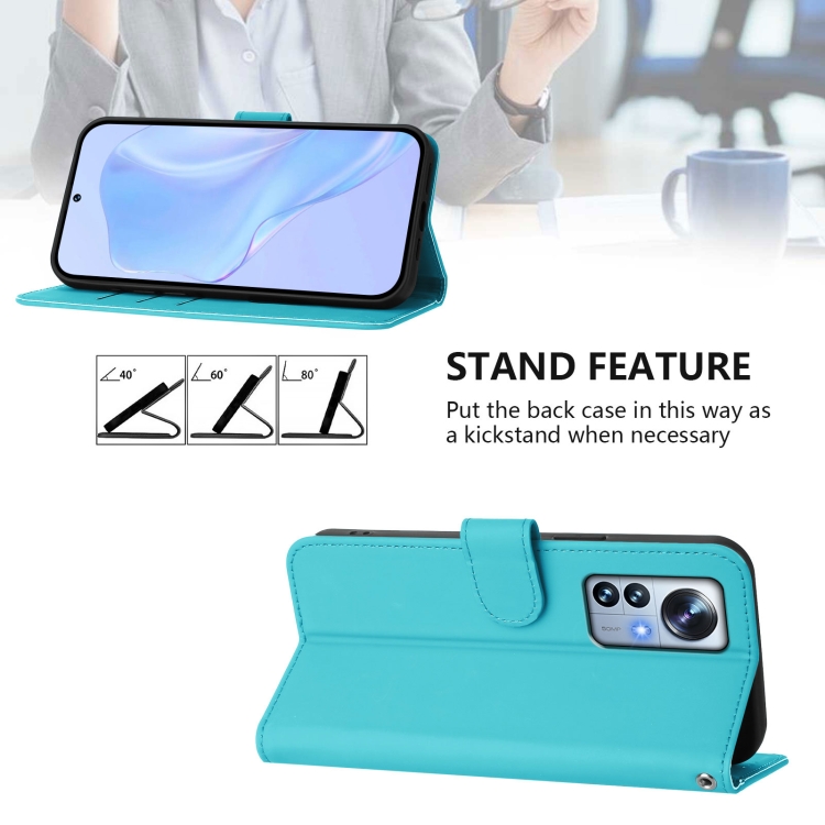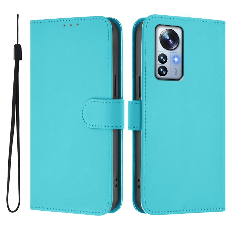 Funda de Piel Sintética con Cordón para Xiaomi 12S Pro/12 Pro (Azul Lago)