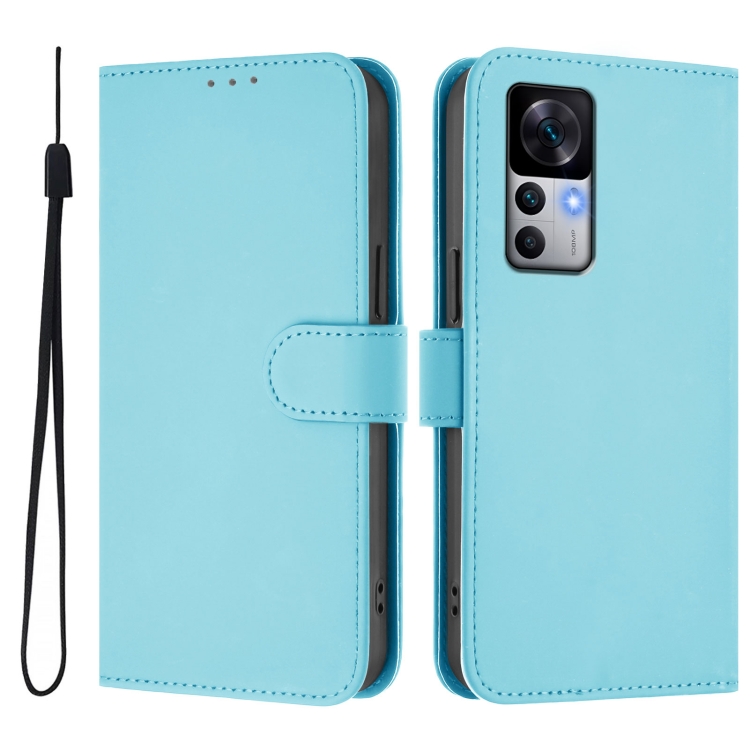 Funda de Piel Sintética con Cordón para Xiaomi 12T/12T Pro (Azul Cielo)