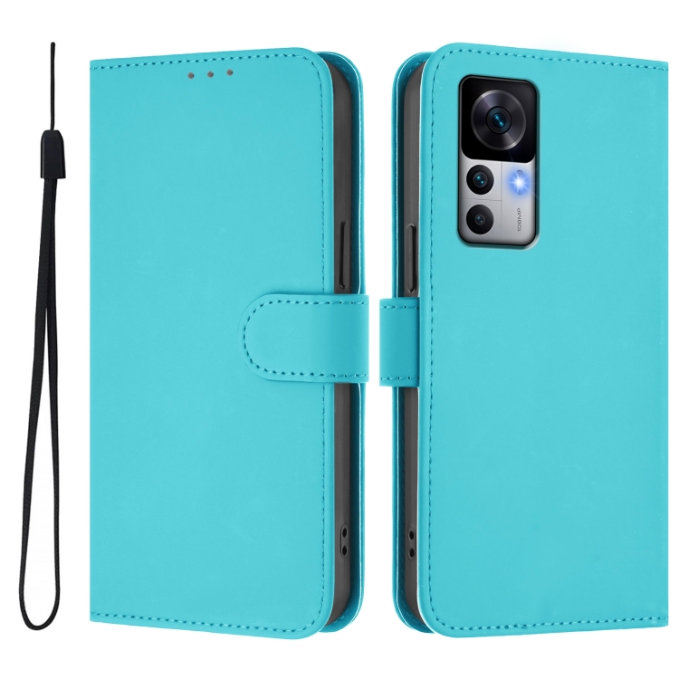 Funda de Piel Sintética con Cordón para Xiaomi 12T/12T Pro (Azul Lago)