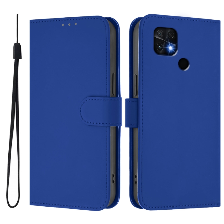 Funda de Piel Sintética con Cordón para Xiaomi Poco C40 (Azul Oscuro)