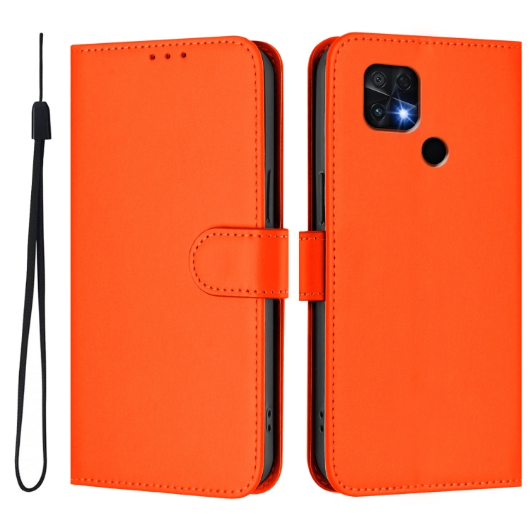 Funda de Piel Sintética con Cordón para Xiaomi Poco C40 (Naranja)