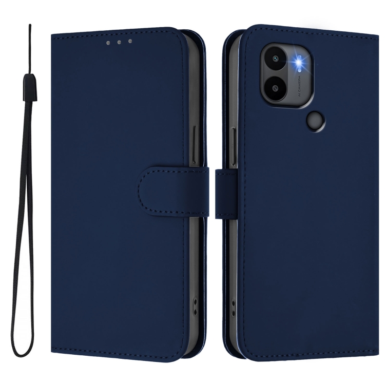 Funda de Piel Sintética con Cordón para Xiaomi Poco C50 4G/C51 (Azul Marino)