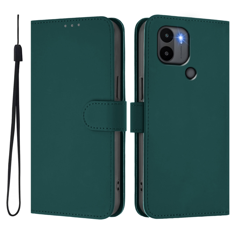 Funda de Piel Sintética con Cordón para Xiaomi Poco C50 4G/C51 (Verde Oscuro)