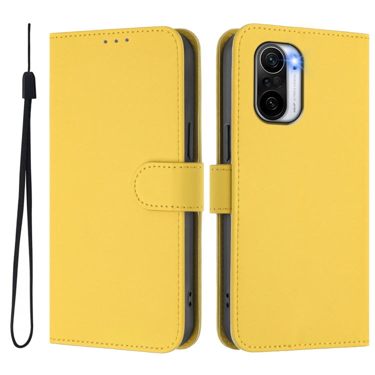 Funda de Piel Sintética con Cordón para Xiaomi Poco F3 (Amarillo Limón)