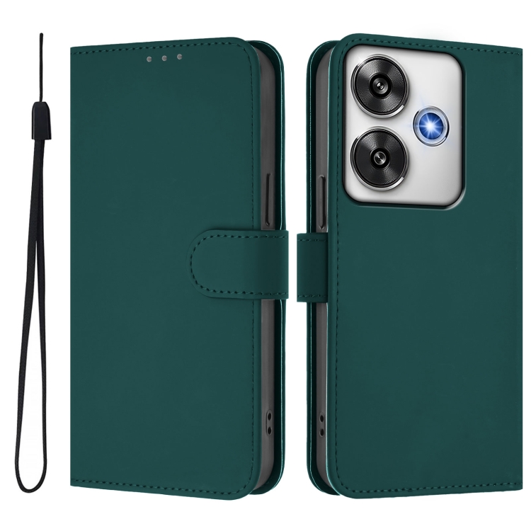 Funda de Piel Sintética con Cordón para Xiaomi Poco F6 5G (Verde Oscuro)