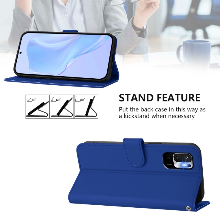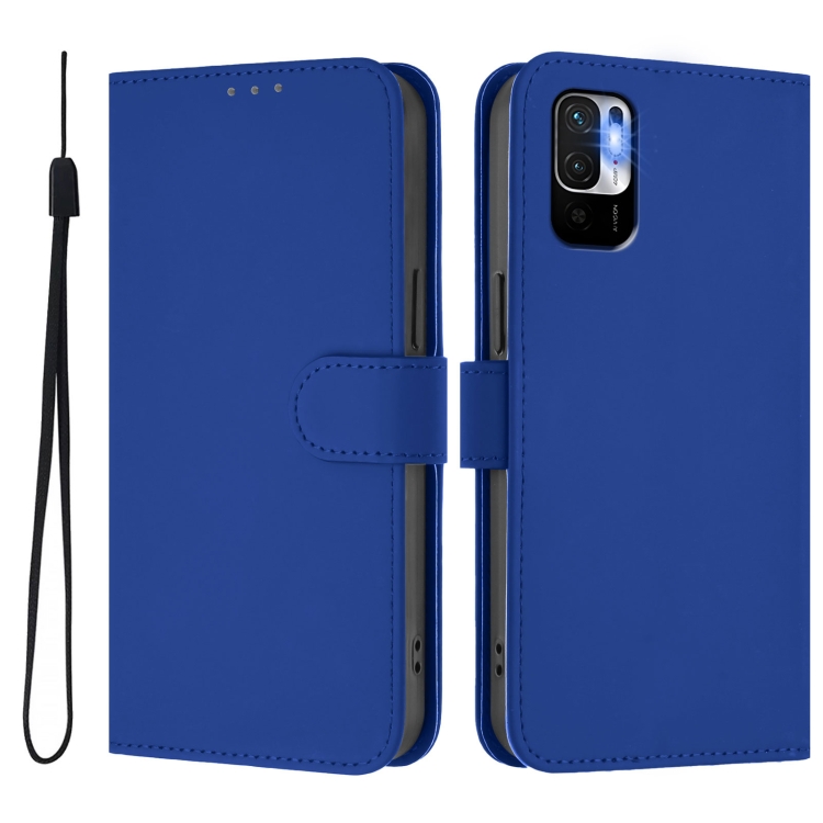 Funda de Piel Sintética con Cordón para Xiaomi Poco M3 Pro (Azul Oscuro)