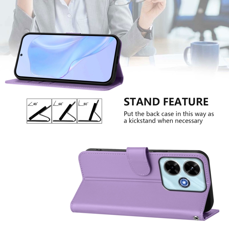 Funda de Piel Sintética con Cordón para Xiaomi Poco M6 4G (Morado Lavanda)