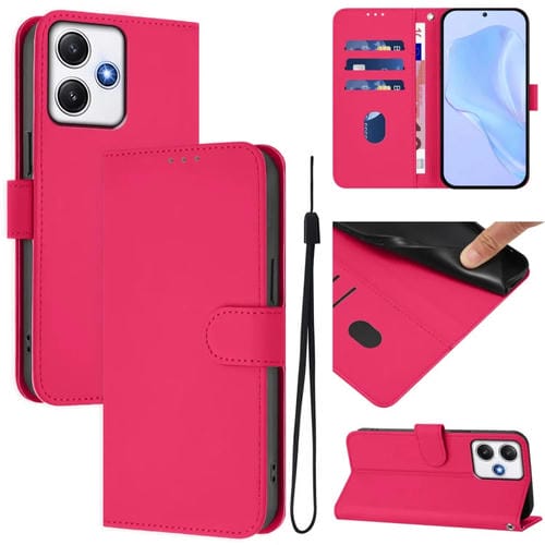 Funda de Piel Sintética con Cordón para Xiaomi Poco M6 Pro 5G (Rosa y Rojo)