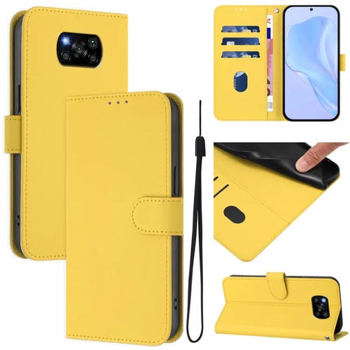 Funda de Piel Sintética con Cordón para Xiaomi Poco X3 Pro / X3 Nfc / X3 (Amarillo Limón)