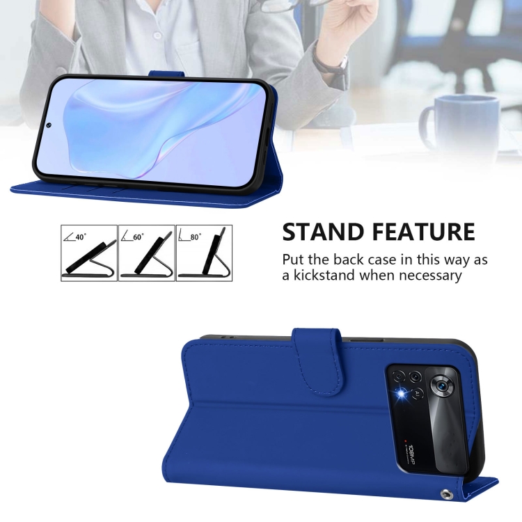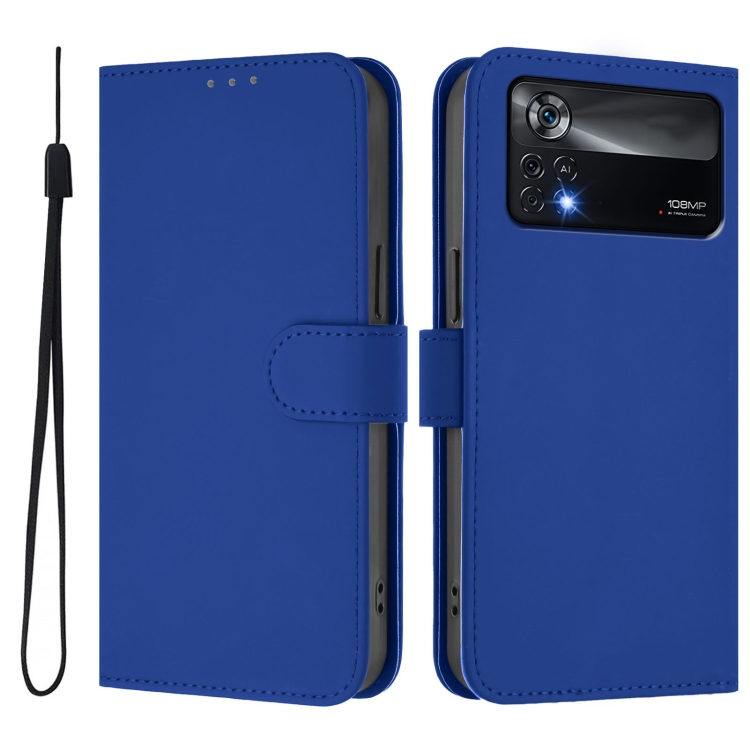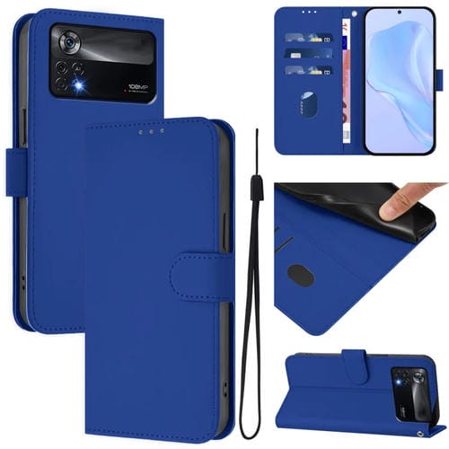 Funda de Piel Sintética con Cordón para Xiaomi Poco X4 Pro 5G (Azul Oscuro)
