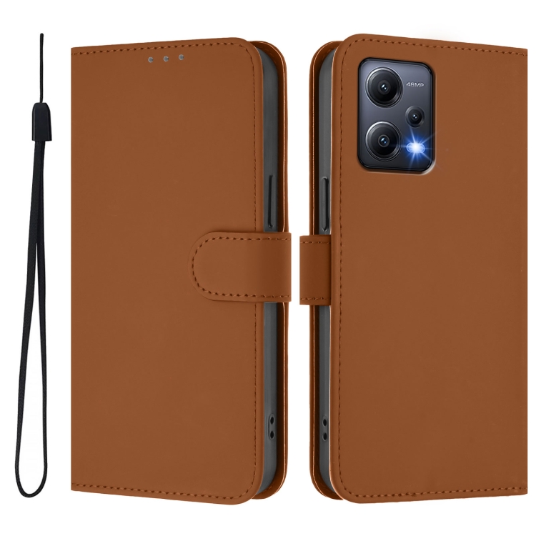 Funda de Piel Sintética con Cordón para Xiaomi Poco X5 (Marrón)