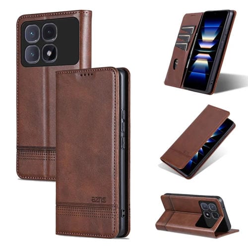 Funda de Piel Sintética con Tapa Magnética Azns para Redmi K70 Ultra (Marrón Oscuro)