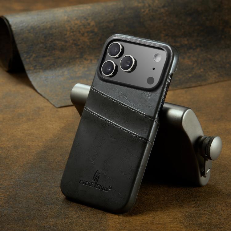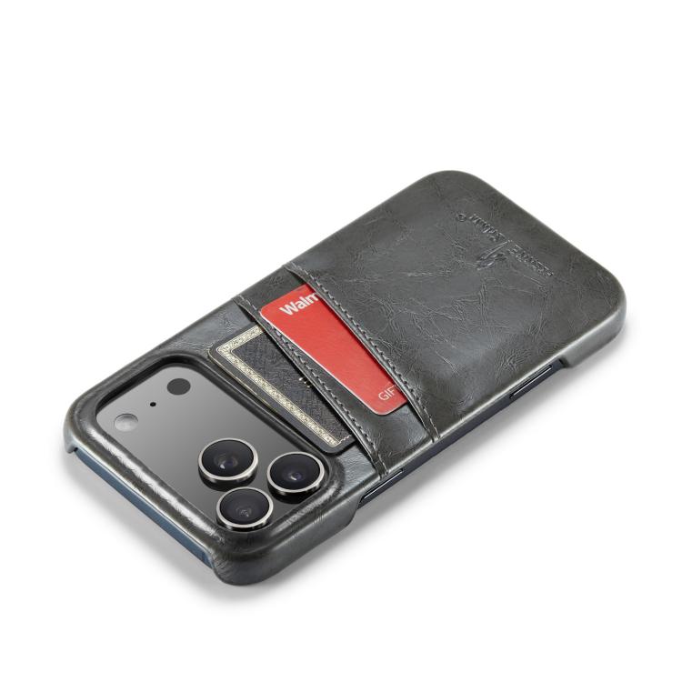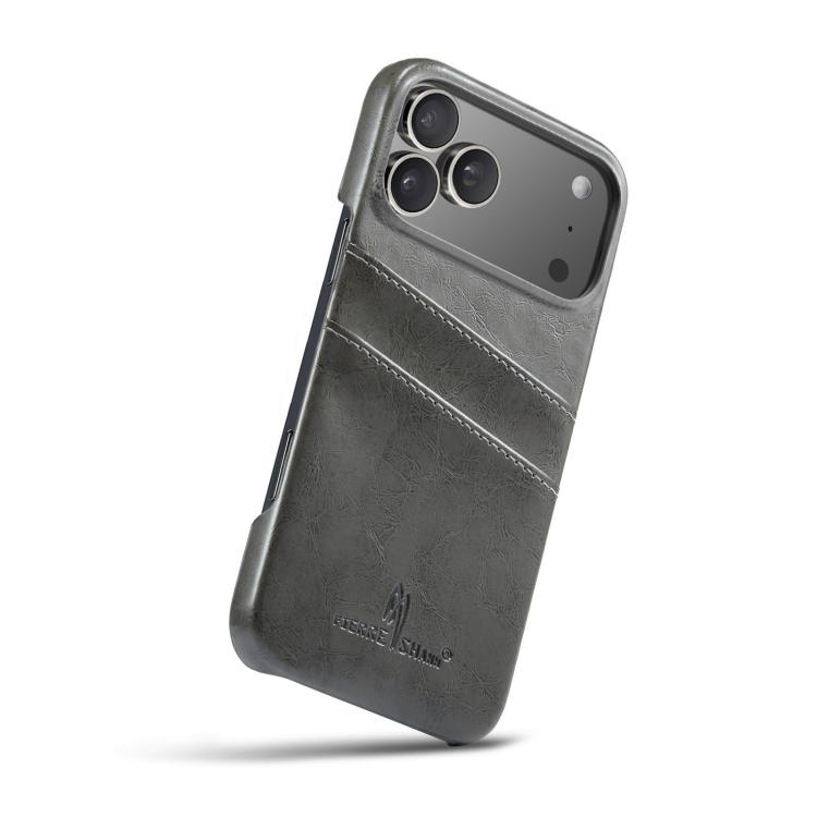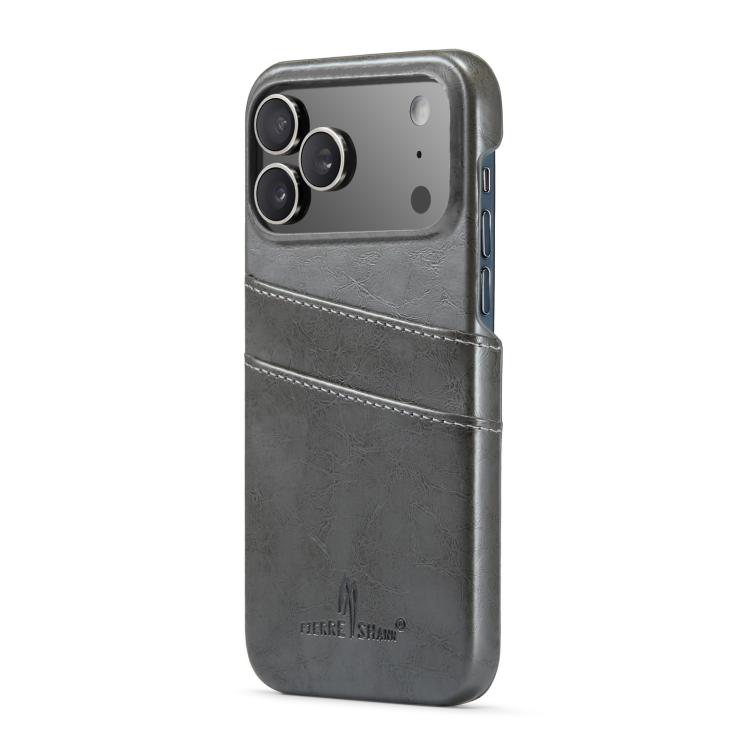 Funda de piel sintética con textura retro de cera de aceite Fierre Shann para iPhone 17 Pro Max (gris)