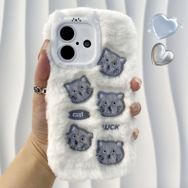 Funda de Silicona Cobertura Total iPhone 16 Forma Gato Peluche (Blanca)