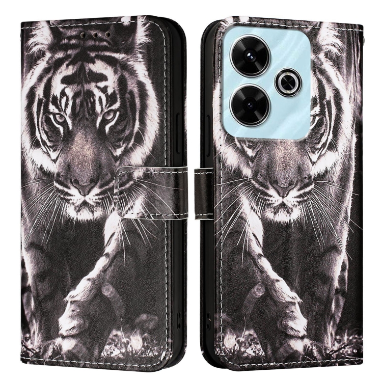 Funda de Teléfono de Cuero con Patrón de Dibujo de Colores de Tejido Liso para Xiaomi Redmi 13 4G (Tigre Blanco y Negro)