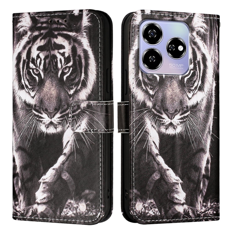 Funda de Teléfono de Cuero ZTE Blade V60 Axon 60 4G con Patrón Tigre (Blanco y Negro)