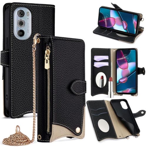 Funda de Cuero con Cadena Cruzada y Diseño de Cola de Pez para Motorola Edge+ 2022 y Edge 30 Pro (Negro)