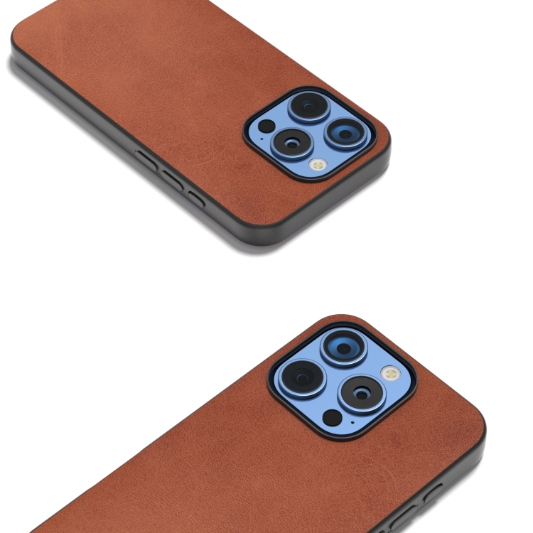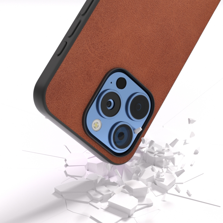 Funda de Teléfono Pu Textura Becerro Dos Colores Marco Negro iPhone 16 Pro Max (Marrón)