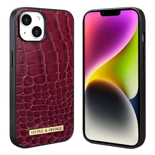 Funda de Teléfono PU Vietao iPhone 14 Plus Textura Cocodrilo (Roja)