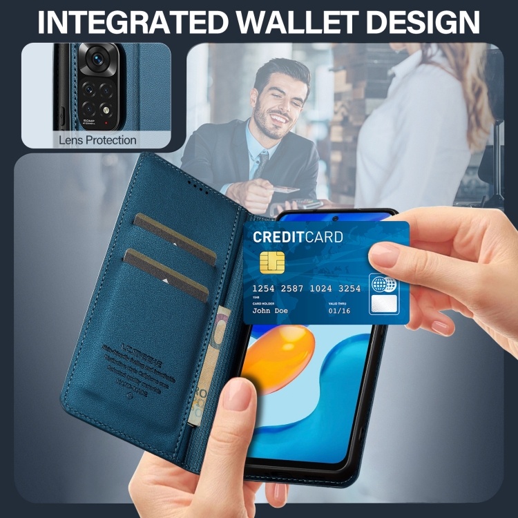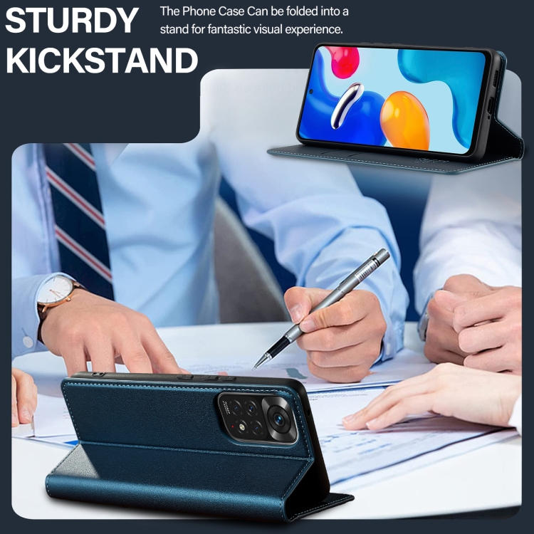 Funda de Teléfono de Pu con Textura Fina Esmerilada para Redmi Note 11 / 11S / 12S 4G Lc.Imeeke L1 Series (Azul)