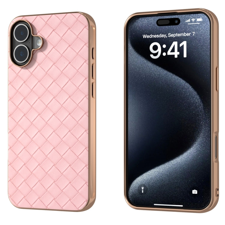 Funda de Teléfono Pu con Textura Tejida y Marco Galvanizado para iPhone 16 (Rosa)