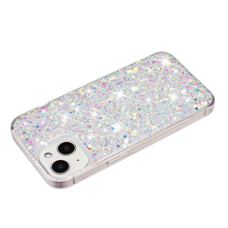 Glitter Powder Clear Frame TPU Phone Case for iPhone 14 Plus (White)